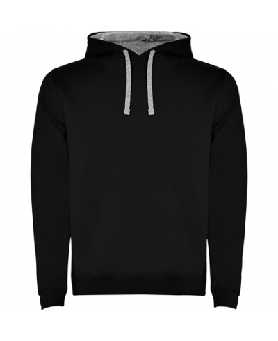 Kapuzensweat. Kapuzenfutter, Kordelzug und Metalösen in Kontrastfarben, Kindergrößen ohne. Nackenband mit Fischgrätmuster. Kängurutasche. 1x1 Rippstrick und Elasthan an Ärmelbündchen und Saum.
