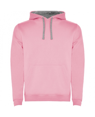 Kapuzensweat. Kapuzenfutter, Kordelzug und Metalösen in Kontrastfarben, Kindergrößen ohne. Nackenband mit Fischgrätmuster. Kängurutasche. 1x1 Rippstrick und Elasthan an Ärmelbündchen und Saum.