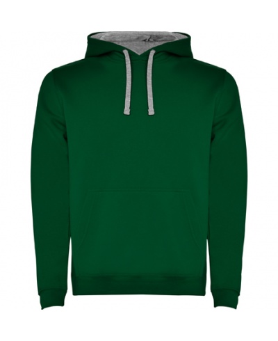 Kapuzensweat. Kapuzenfutter, Kordelzug und Metalösen in Kontrastfarben, Kindergrößen ohne. Nackenband mit Fischgrätmuster. Kängurutasche. 1x1 Rippstrick und Elasthan an Ärmelbündchen und Saum.