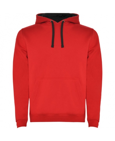 Kapuzensweat. Kapuzenfutter, Kordelzug und Metalösen in Kontrastfarben, Kindergrößen ohne. Nackenband mit Fischgrätmuster. Kängurutasche. 1x1 Rippstrick und Elasthan an Ärmelbündchen und Saum.