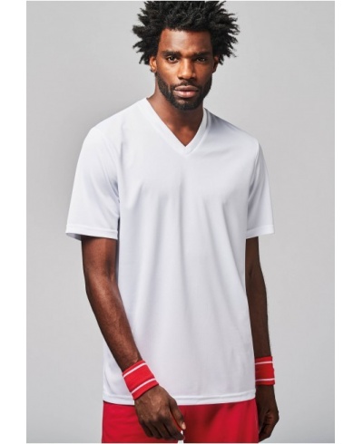 100% Polyester. Schnelltrocknend. V-Ausschnitt. Doppelnaht an Hüfte und Ärmel. Ideal für den Sublimationsdruck.