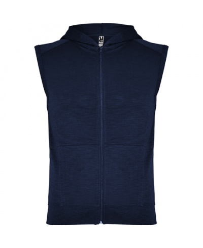 Kapuzenweste mit durchgehendem Reißverschluss. Eingefasste, weite Ärmelöffnungen. Seitlicher Stoffeinsatz mit Ziernaht. Breites Rippenbündchen am Saum. Kängurutaschen.