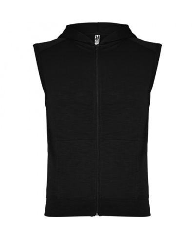 Kapuzenweste mit durchgehendem Reißverschluss. Eingefasste, weite Ärmelöffnungen. Seitlicher Stoffeinsatz mit Ziernaht. Breites Rippenbündchen am Saum. Kängurutaschen.