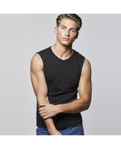 Figurbetontes Tank Top, V-Ausschnitt und breite Träger. Kragen- und Ärmeleinfassung im T-Shirtmaterial. Doppelnähte. Verlängerte, abgerundete Rückseite. Verstärkte Seitennähte für bessere Haltbarkeit.