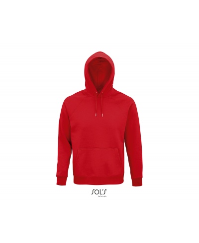 Material: FLEECE 280 - 80% biologisch angebaute Baumwolle - 20% recyceltes Polyester, 3 Garne, Gebürstetes Futter, Außen: 100% Bio-Baumwolle; Schneiden und nähen, Raglanärmel, 2x2 gerippte Manschetten und Saum, Halbmond im Kragen, Halsband, Kordelzug mit Metallösen und Stopfen, Jersey gefütterte Kapuze; Zertifikate: STANDARD 100 by OEKO-TEX®; Organic Blended Content Standard