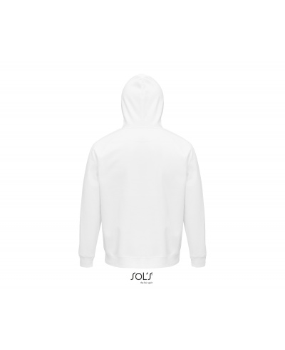 Material: FLEECE 280 - 80% biologisch angebaute Baumwolle - 20% recyceltes Polyester, 3 Garne, Gebürstetes Futter, Außen: 100% Bio-Baumwolle; Schneiden und nähen, Raglanärmel, 2x2 gerippte Manschetten und Saum, Halbmond im Kragen, Halsband, Kordelzug mit Metallösen und Stopfen, Jersey gefütterte Kapuze; Zertifikate: STANDARD 100 by OEKO-TEX®; Organic Blended Content Standard