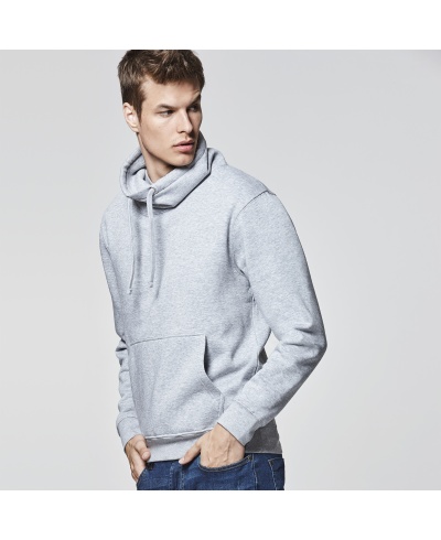 Sweatshirt mit Rollkragen und Kordelzug. Kängurutasche. 1 x 1 Rippenbündchen mit Elasthan an Ärmeln und Saum.