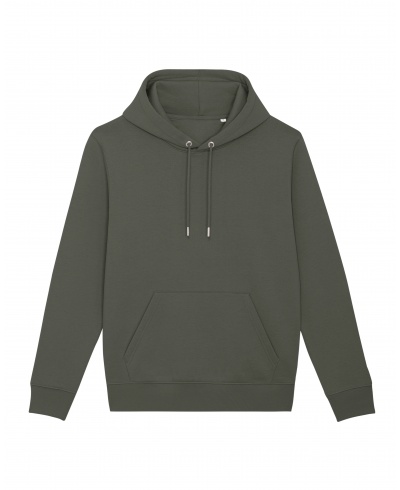 Gewicht: 350 g/m2; Material: 85% organische ringgesponnene gekämmte Baumwolle, 15% recyceltes Polyester; Eingesetzte Ärmel, Kapuze mit abgesetztem Futter, Runde gleichfarbige Kordel, Kordelenden aus Metall, Ösen aus Metall, Nackenband mit Fischgrätmuster, Abgesetzter Halbmond im Nacken, Einfache Absteppung am Halsausschnitt und entlang der Kapuze, 1x1 Rippstrick an Ärmelenden und unterem Saum, Doppelabsteppung an Ärmelansätzen, Ärmelenden und unterem Saum, Kängurutasche; Zertifikate: OEKO-TEX® STANDARD 100, GOTS - Global Organic Textile Standard, FAIR WEAR, PeTA - Approved VEGAN