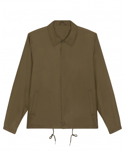 Material: 100 % recyceltes Polyester, fluorfrei; Gewicht: 75g/m²; Mittlere Passform, angesetzte Ärmel, Kragen mit Kragensteg, Metalldruckknöpfe vorne in der Mitte, Leistentaschen vorne, runde Kordelzüge am unteren Saum in passender Körperfarbe mit Metallbesatz, halbelastische Ärmelbündchen, innenliegende Brustleistentasche, gleicher Stoff Halbmond am Nacken, Innenreißverschluss am unteren Saum und auf der linken Brust des Trägers für eine einfache Dekoration; Zertifikate: Global Recycled Standard (GRS), Fair Wair, STANDARD 100 by OEKO-TEX®, Peta - Approved VEGAN