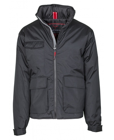 Taillierte Unisex-Jacke mit 8 mm Reißverschluss aus Kunststoff mit Metallschieber, im Kragen einrollbarer Kapuze, elastischen Ärmelbündchen mit Verschluss, zwei geräumigen Vordertaschen mit LOCK SYSTEM, zwei Seitentaschen, Handy-Brusttasche; Innenseite: wattiert, Reißverschluss zum einfacheren Veredeln mit Druck und Stick