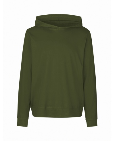 Material: 100% Bio-Fairtrade-Baumwolle, single Jersey Knit; Gewicht: 155 g/m²; Leicht montiert. Doppelt gefütterte Kapuze. Zweifache Manschetten an Ärmeln und Bund. Innenhalsband