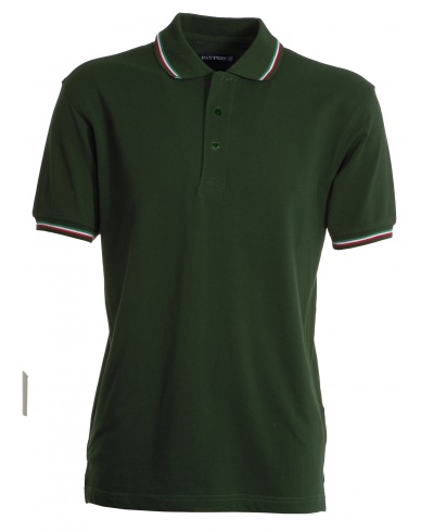 Unisex Kurzarm-Poloshirt mit 3 weißen Knöpfen, farblich abgesetztem Kragen und Ärmelabschluss (Farben der Fahne), Rippkragen und Ärmelabschluss, Seitennähte mit verstärkten Nähten, verdeckte Kragensteppung, Seitenverstärkungsband, Stretchnähte, Nackenband innen