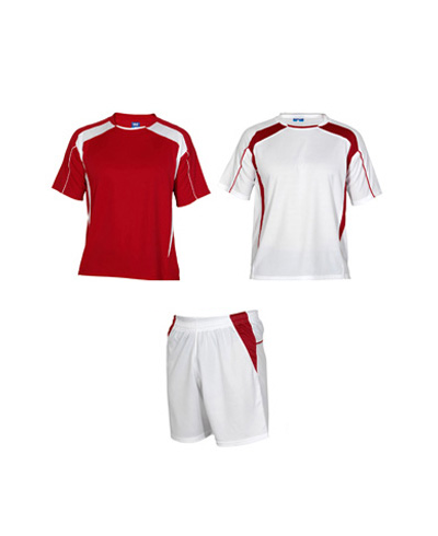 Zweifarbiges Unisex Sport-Set: 2 T-Shirts und eine Shorts.