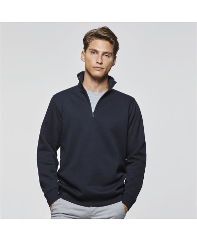 Sweatshirt mit Half Zip im gleichen Ton und hohem Kragen. Innenkragen im gleichen Ton und Nackenband. Rippstrick am Saum und Ärmelbündchen.