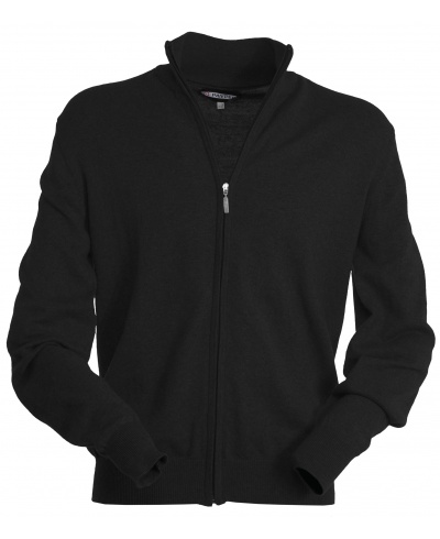 Unisex, full zip jumper with fine rib cuffs and hem, elbow patches, in stocking stitch and fully fashioned without seams