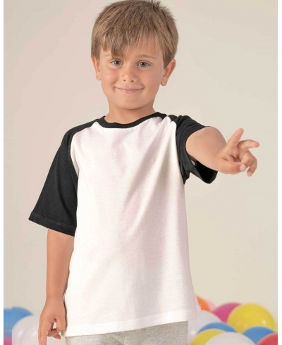 Baseball-T-Shirt für Jungen mit kurzen Ärmeln und Kragen im Kontrast zu Seitennähten, 100% Baumwolle. Abnehmbares Etikett. Verfügbar in 5 Farben.