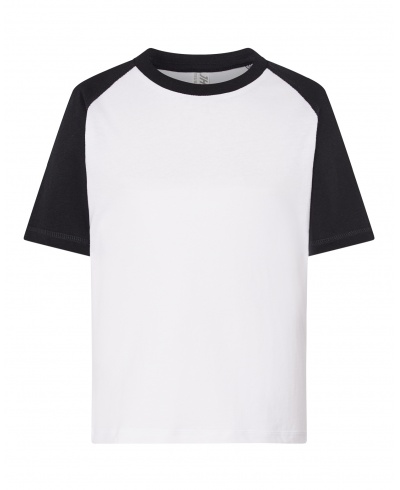 Raglanärmel und Kragen in Kontrastfarbe.