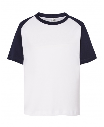 Baseball-T-Shirt für Jungen mit kurzen Ärmeln und Kragen im Kontrast zu Seitennähten, 100% Baumwolle. Abnehmbares Etikett. Verfügbar in 5 Farben.