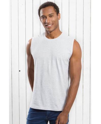 Single Jersey. Double stitch on collar, armhole and bottom.