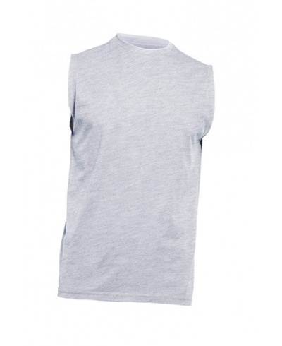 Single Jersey. Double stitch on collar, armhole and bottom.