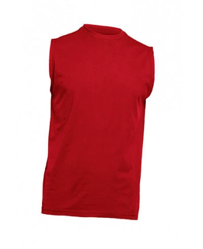 Single Jersey. Double stitch on collar, armhole and bottom.