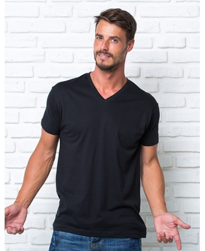 Nackentape Schulter zu Schulter. Feiner V-Kragen mit Lycra. Grey Melange: 85% Baumwolle / 15% viskose. Heather: 65% polyester / 35% Baumwolle. Denim heather: 60% Baumwolle / 40% polyester