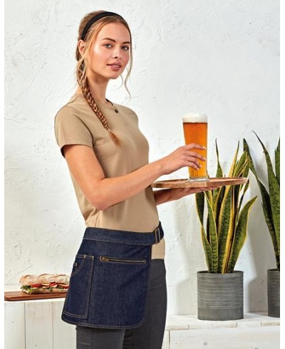 Diese Schürze ist eine coole und skurrile Ergänzung der Artisan-Kollektion und kann auf der Hüfte getragen werden, um praktischen Zugriff auf die Tasche zu ermöglichen. Verfügt über eine Tablet-freundliche Tasche im Jeans-Stil und eine YKK-Reißverschlusstasche, die sich vom Hauptteil der Schürze abnehmen lässt, um Druck- und Stickanwendungen auf der Vorderseite zu ermöglichen. Ein verstellbarer Bund aus gleichem Stoff reicht um die Taille und wird mit einem antiken Messingkarabiner und einem D-Ring befestigt.