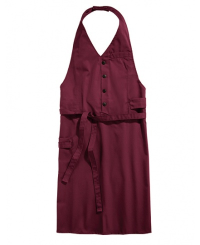 Eine gelungene Mischung aus elegant und praktisch repräsentiert diese Westenschürze. Durch ihren raffinierten Schnitt passt die Schürze mit nur einer Größe allen Mitarbeitern im Team. Das Oberteil hat vier Zierknöpfe, das Nackenband ist mit drei Knöpfen in der Länge verstellbar. In der Taille wird die Schürze mit Schürzenbändern geschlossen. Eine seitlich aufgesetzte Tasche (17x19 cm) mit zwei Fächern bietet genug Stauraum für Arbeitsmaterial. Der besondere Clou sind die aufgesetzten Schlaufen, in denen griffbereit das Serviertuch eingehängt werden kann. 95ºC waschbar, knitterarm, pflegeleicht, farbecht, industriewäsche- und finishertauglich.