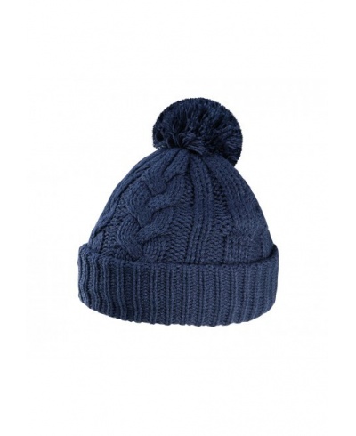 100% Acryl außen / 100% Polyester innen. Gestrickte Bommelmütze, Mikrofleece gefüttert.