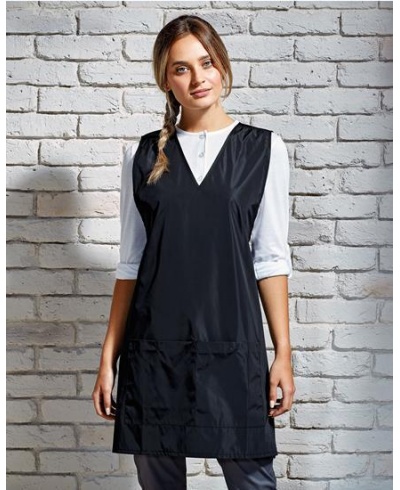 Dieser Stil ist ein attraktiver Stil und bietet gleichzeitig absolute Praktikabilität für den Träger. Er ist eine wasserdichte und bleichmittelbeständige Version des Kundenlieblings, der PR177 „Tulip“ Wrap Around Tunic. Ein Über-den-Kopf-Stil, der von hinten nach vorne an der Unterseite befestigt wird, sich dann wieder umwickelt und hinten sauber gebunden wird.