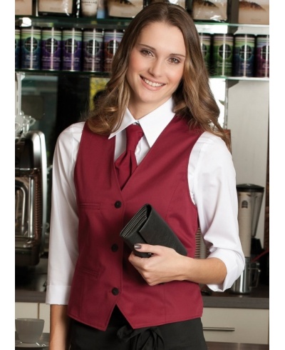 Die klassische Weste ist leicht tailliert, ein Zugband im Rücken reguliert die Weite. Aus strapazierfähigem Mischgewebe, knitterarm, farbecht und in allen Farben bis zu 95° C waschbar.