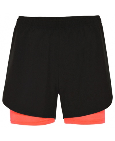 Damen Sportshorts mit kontrastfarbigen Innennetz. Elastischer Bund mit internen gekreuzter Kordelzug um Anpassung zu erleichtern. Reflektierende Elemente. Spezial Runninggewebe für optimale Körperanpassung.