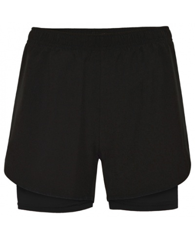 Damen Sportshorts mit kontrastfarbigen Innennetz. Elastischer Bund mit internen gekreuzter Kordelzug um Anpassung zu erleichtern. Reflektierende Elemente. Spezial Runninggewebe für optimale Körperanpassung.