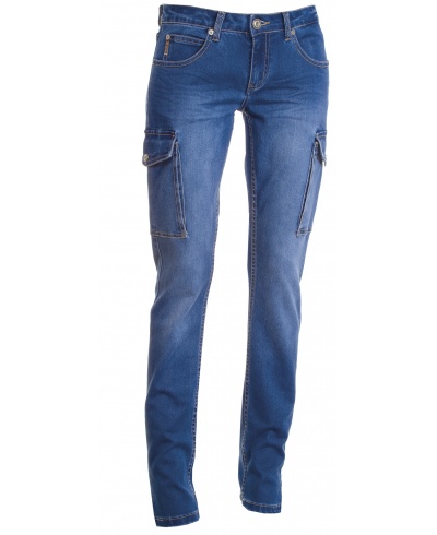 Ganzjährig tragbare Damenhose im Jeans-Design mit fünf Taschen, zwei Seitentaschen mit