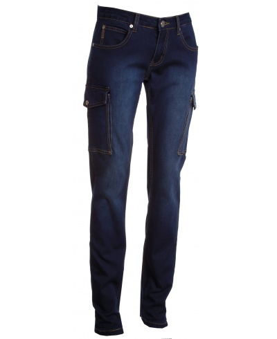 Ganzjährig tragbare Damenhose im Jeans-Design mit fünf Taschen, zwei Seitentaschen mit