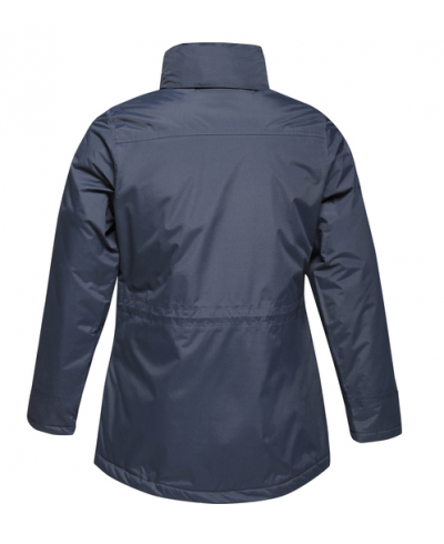 Wasserdichtes Hydrafort 5000 Peached-Polyester-Gewebe, winddichtes Gewebe, Thermo-Guard-Isolierung, getapte Nähte, 160 g/m² Körperisolation Watte, verdeckte Kapuze mit Verstellmöglichkeiten, verstellbare Ärmelbündchen, 2 untere Taschen mit Reißverschluss-Handwärmer und 2 untere Cargo-Taschen, Handytasche, Innen Sicherheitstasche und RV-Brusttasche, verdeckter RV-Eingang im Futter für Stickzugang, taillierter Schnitt