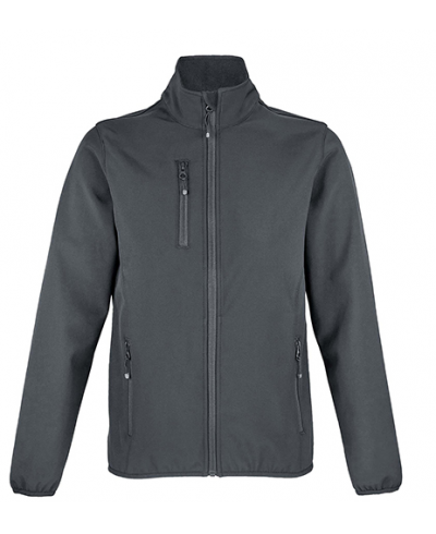 Material: Softshell 270 – 94 % recycelter Polyester – 6 % Elastan – 3 Lagen; Futter aus Polarfleece: 100 % Polyester; Recyceltes Polyester / Elasthan – 3 Lagen, Fleece innen: 100 % Polyester; Nachhaltiges Material, Softshell 270, bequemer Schnitt, Öffnung mit Reißverschluss, 2 Seitentaschen und 1 Brusttasche mit Reißverschluss, kontrastfarbene Reißverschlüsse, elastischer Bund an Ärmeln und Saum, Tear-Away Label; Zertifikate: Global Recycled Standard (GRS), STANDARD 100 by OEKO-TEX®