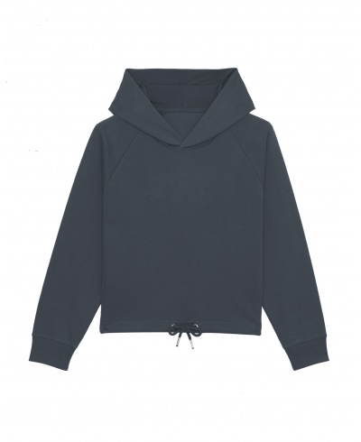 Gewicht: 300 g/m²; Material: 85% GEKÄMMTE RINGGESPONNENE BIO-BAUMWOLLE, 15% RECYCELTES POLYESTER; Raglanärmel, Kapuze mit Jerseyfutter, Nackenband mit Fischgrätmuster, Abgesetzter Halbmond im Nacken, Einfache Absteppung am Halsausschnitt und unterem Saum, 1x1 Rippstrick an unterem Saum mit Doppelabsteppung, Runde gleichfarbige Kordel, Kordelenden aus Metall, Ösen aus Metall