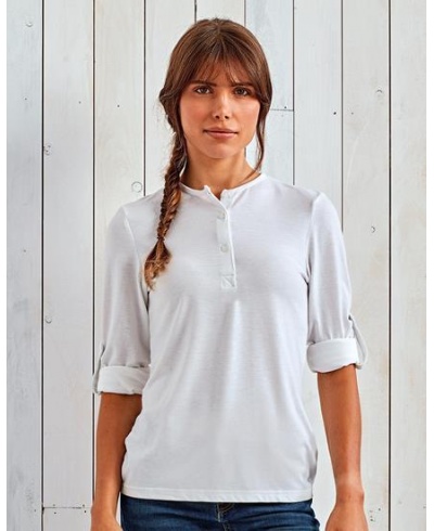 Ein schlichter, aber vielseitiger Stil, der langärmelig oder nach hinten gerollt getragen und am Oberarm befestigt werden kann. Weich im Griff und mit einem Stretchanteil im Stoff ist dies ein trendiges Arbeitskleidungsstück, das als lässige Alternative zu einem Hemd fungiert.