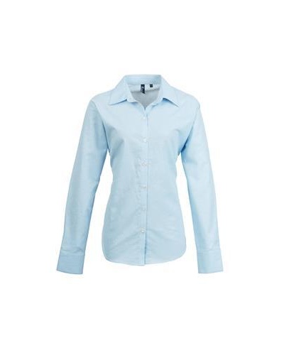 Die langärmlige Signature-Oxford-Bluse von Premier besteht aus einem baumwollreichen Oxford-Gewebe. Diese Bluse bietet der Trägerin einen halb taillierten Stil mit Abnähern an Brust und Rücken, einem abgerundeten unteren Saum und einem weichen Kragendetail am Ausschnitt.