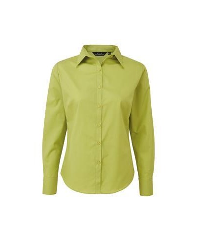 Eine stilvolle Damenbluse mit langen Ärmeln, die in 27 Farben erhältlich ist. Diese Bluse bietet der Trägerin einen halb taillierten, femininen Stil mit weichem Kragen, Brust, Abnähern auf der Rückseite und einem abgerundeten unteren Saum.