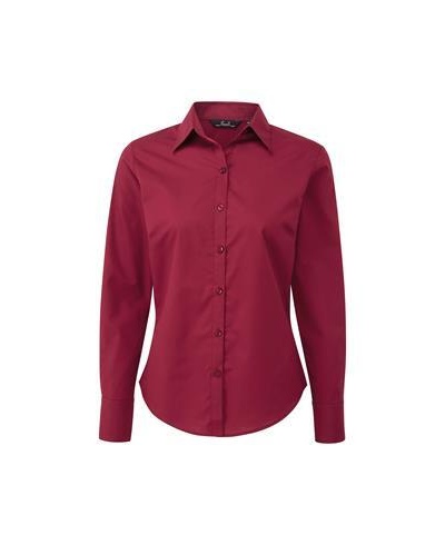 Eine stilvolle Damenbluse mit langen Ärmeln, die in 27 Farben erhältlich ist. Diese Bluse bietet der Trägerin einen halb taillierten, femininen Stil mit weichem Kragen, Brust, Abnähern auf der Rückseite und einem abgerundeten unteren Saum.