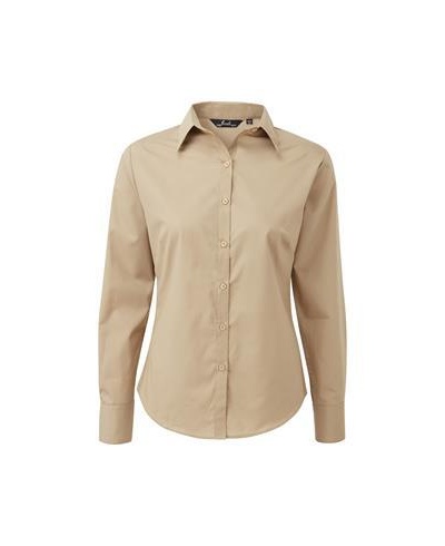 Eine stilvolle Damenbluse mit langen Ärmeln, die in 27 Farben erhältlich ist. Diese Bluse bietet der Trägerin einen halb taillierten, femininen Stil mit weichem Kragen, Brust, Abnähern auf der Rückseite und einem abgerundeten unteren Saum.