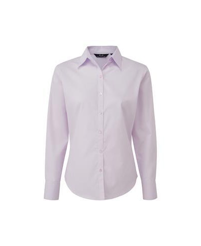Eine stilvolle Damenbluse mit langen Ärmeln, die in 27 Farben erhältlich ist. Diese Bluse bietet der Trägerin einen halb taillierten, femininen Stil mit weichem Kragen, Brust, Abnähern auf der Rückseite und einem abgerundeten unteren Saum.