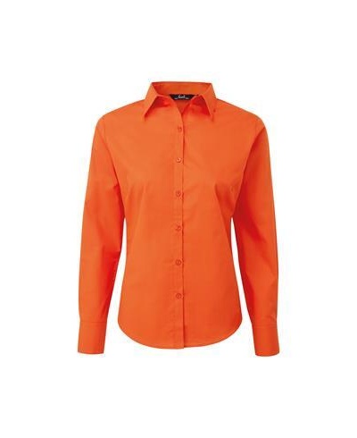 Eine stilvolle Damenbluse mit langen Ärmeln, die in 27 Farben erhältlich ist. Diese Bluse bietet der Trägerin einen halb taillierten, femininen Stil mit weichem Kragen, Brust, Abnähern auf der Rückseite und einem abgerundeten unteren Saum.