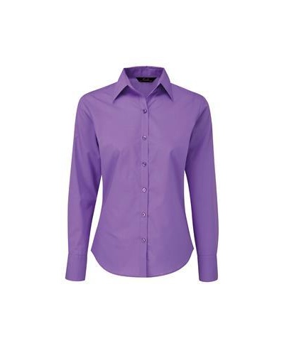 Eine stilvolle Damenbluse mit langen Ärmeln, die in 27 Farben erhältlich ist. Diese Bluse bietet der Trägerin einen halb taillierten, femininen Stil mit weichem Kragen, Brust, Abnähern auf der Rückseite und einem abgerundeten unteren Saum.