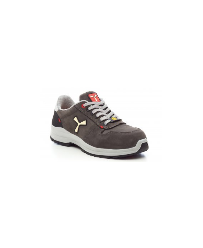 Niedriger Damen-Sicherheitsschuh, Obermaterial aus wasserabweisendem und atmungsaktivem Leder, atmungsaktives und abriebfestes Innenfutter (auf der gesamten Innenfläche), 6+6 metallfreie Ösen, Hinterkappe aus Leder mit Pampasstruktur mit reflektierendem Einsatz, Zehenschutzkappe aus druckgegossenem Aluminium, herausnehmbare Einlage Ortholite X40 016 ESD, zertifizierte durchtrittsichere Sohle aus Verbundgewebe, Versteifungselement zum Schutz vor Verdrehungen, hufeisenförmiger Spitzenschutz, Zwischensohle aus federleichtem Polyurethan ESD, Dämpfungssystem MASTER BALANCE aus PU-Polyether von hoher Bruchfestigkeit und ausgewogener Dichte, X-TRAIL-GRIP-Sohle aus TPU ESD mit Fersen- und Zehenschutz