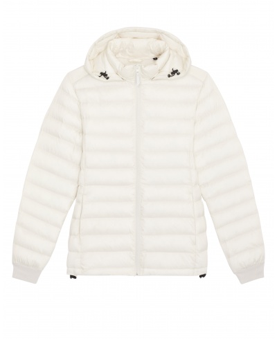Material: 100 % recyceltes Polyester, fluorfreie DWR; Gewicht: 75g/m²; Taillierter Schnitt, angesetzte Ärmel, hoher Kragen mit abnehmbarer Kapuze und verdeckten Druckknöpfen aus mattem Metall, Kapuzenöffnung und unterer Saum mit verstellbarem Kunststoffstopper und elastischer Kordel, umgekehrter Nylonreißverschluss vorne in der Mitte, Leistentaschen mit Reißverschluss und zusätzlichem Ripsbandschieber, vollständig gesteppt, Seiteneinsätze für bessere Form, 1x1-Ripp am Ärmelsaum, innen eingefasste Nähte; Zertifikate: Global Recycled Standard (GRS), Fair Wair, STANDARD 100 by OEKO-TEX®, Peta - Approved VEGAN