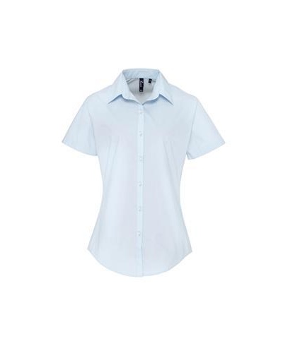Ein Kurzarmhemd aus Supreme-Popeline für Damen, das aus einem schweren Material für ein verbessertes Erscheinungsbild besteht. Weiche Kragendetails, Brust- und Rückenabnäher verleihen dieser Bluse ein halb tailliertes Aussehen.