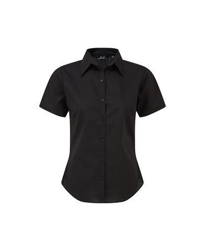 Eine Damen-Kurzarmbluse mit halb tailliertem Schnitt, erhältlich in 27 Farben. Die Bluse verfügt über einen weichen Kragenstil mit Abnähern an Brust und Rücken sowie einen abgerundeten Saum für ein wirklich attraktives Arbeitskleidungsstück.